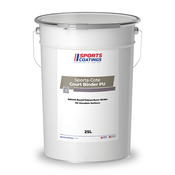 Sports-Cote Court Binder PU is a single pack moisture curing polyurethane coating designed for application to macadam surfaces. Without affecting porosity, Sports-Cote Court Binder PU penetrates the substrate and cures to form a strong yet flexible film within the interstitial spaces of the macadam surface.